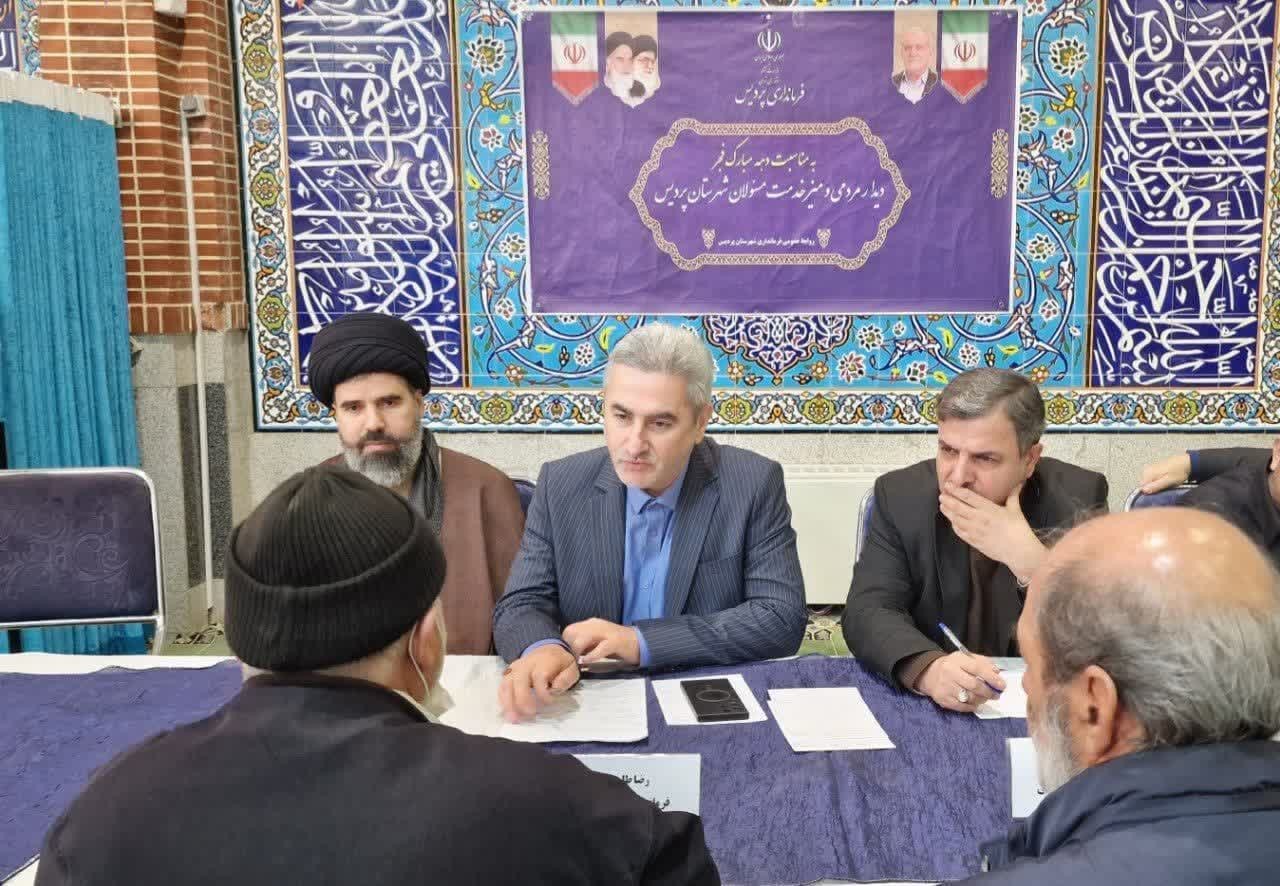 روز جمعه 18 بهمن ماه سال جاری مصلی نماز جمعه شهرستان پردیس این هفته و به مناسبت ایام الله دهه مبارک فجر، میزبان میز خدمت مسئولان شهرستان بود. این قرار خدمت با حضور رضا طاهرخانی فرماندار پردیس، حجت الاسلام حسینی امام جمعه، معاونان فرماندار، دکتر آسیائی رئیس شبکه بهداشت و درمان، بخشداران، شهرداران و روسای ادارات و نهادهای شهرستان پیش از اقامه نماز عبادی سیاسی جمعه برگزار و جمع کثیری از مردم با حضور در مصلی نماز جمعه مشکلاتشان را با مسئولان در میان گذاشته و خواستار رسیدگی برای رفع این مشکلات شدند. پس از برگزاری این میز خدمت، فرماندار پردیس پیش از خطبه های نماز جمعه و در سخنانی به تشریح اقدامات و دست آوردهای یک سال گذشته دستگاه های اجرایی و تبیین آخرین وضعیت انخابات در شهرستان پرداخت.
